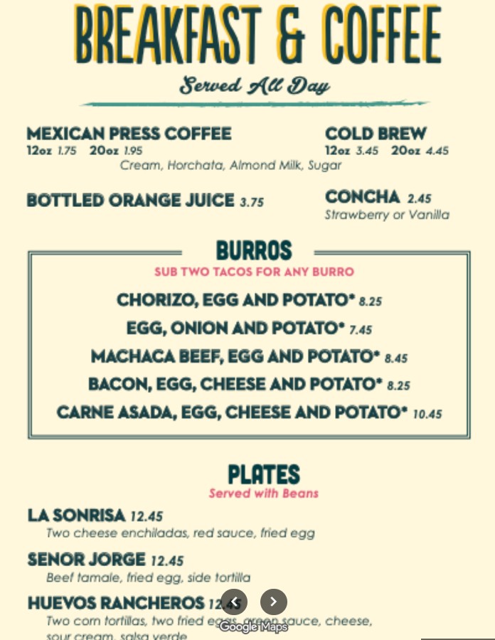 So my concern is I paid 8.25 for a burrito that doesn’t seem bigger than a napkin. Filibertos charges $9 for a large carne asada burrito that i split i half for all day eating the price wasn’t worth it. You ask for horchata coffee taste strong no sugar sweetness or flavor. Not happy with pricing. And the girl at the window looked like she was not happy to be there….